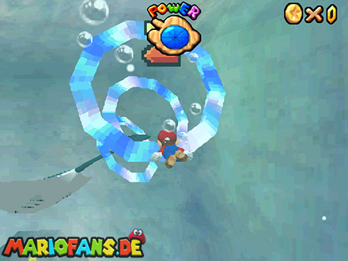 Wie der Titel schon sagt müsst ihr durch Ringe schwimmen. Sobald ihr im Level gelandet seid, müsst ihr den Mantax suchen. Habt ihr ihn gefunden, versucht euch hinter ihn zu hängen. Er lässt hinter seinem Schwanz immer einen Ring aufsteigen. Schwimmt durch insgesamt 5 Ringe. Die Ringe müssen aber hinter einander durchschwommen sein, sonst ist der Zähler wieder bei 0. Am besten ist es, wenn der Mantax wieder etwas nach oben schwimmt! Wenn ihr durch die 5 Ringe geschwommen seid, erscheint der Stern genau über dem Strudel, passt also auf, dass ihr nicht eingesaugt werdet.