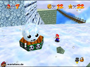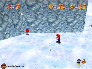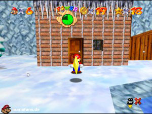Auf zur Suche nach den acht roten Münzen! Die erste befindet sich gleic vorne auf dem Tannenbaum. Geht nun zur zerstörten Brücke, wo ihr auch mit dem Pinguin-Baby wart. Stellt euch an den Rand, und ihr landet unten auf einer Brücke des Berges. Dort befindet sich die zweite Münze. Lauft die Brücke entlang, bis zum Ende, dann von euch gesehen nach rechts, durch den Schnee. Hinter einer Wand befindet sich die nächste rote Münze. Geht nun zur Mutter des Pinguin-Babys, dort auf dem Baum ist noch eine rote Münze. Jetzt benutz den Lift, um mit dem rosa Bob-omb zu reden. Er öffnet die Kanone, wenn der Lift zurück kommt, fahrt nach oben, dort ist noch eine rote Münze. Lauft Richtung Schneemannkopf. Immer den Weg weiter. In einer Spalte befindet sich noch eine rote Münze. Ihr habt bestimmt die springenden Schneemänner gesehen. Geht zur Brücke und überquert diese. Ihr seht schon wieder eine rote Münze sammelt auch diese ein. Geht jetzt wieder unten zur zerstörten Brücke. Stellt euch an den Rand und lasst euch nach oben teleportieren. Geht jetzt das fehlende Abschnitt der Brücke entlang und ihr fallt auf ein Abschnitt wo die letzte rote Münze haust. Ihr müsst jetzt den Weg weiter gehen, und ihr landet wieder an der Brücke, wo die vorletzte Münze gelegen hat. mit einen langen Sprung (Z+A) schafft ihr es bis zur anderen Seite wo der Stern auf euch wartet.