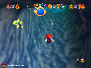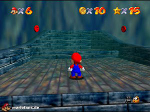 Geht wieder ins Wasser, taucht aber diesmal nur nach vorne zu den Muscheln, denn diese enthalten schon die ersten roten Münzen. Von euch aus gesehen die linke Muschel und die Muschel vor dem Abgrund sind mit roten Münzen versehen. Taucht in den Abgrund bis zum Grund, dort findet ihr wieder eine Muschel mit der dritten roten Münze. Jetzt könnt ihr wieder zu den anderen dreien schwimmen wo es auch schon rote Münzen zu finden gab. Ihr seht am Rand eine kleine Sandbank, in dieser befindet sich auch eine Muschel mit der vierten roten Münze. Geht ans Ufer und sucht den pinken Bob-omb, welcher die Kanone öffnet wenn ihr mit ihm redet. Klettert bei dem Bob-omb an den Pfahl der aus dem Wasser schaut bis zur Spitze, denn dort ist wieder eine rote Münze. Die letzten drei roten Münzen findet ihr auf dem Schiff, ihr gelangt entweder mit der Kanone zum Schiff, oder ihr benutzt den Land weg. Dieser ist ein wenig komplizierter, ihr müsst einen Schalter betätigen damit Blöcke erscheinen, die euch über das Wasser bringen. Auf dem Schiff findet ihr am Buck (vorne) eine rote Münze und am Heck (hinten auf der Erhöhung) zwei rote Münzen. Der Stern erscheint auch auf dem Schiff.