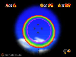 In der letzten Mission musst du noch einmal zum Luftschiff, wenn du die Kanone bereits geöffnet hast (siehe Mission 3), dann gehe dort hinein. Ziele in die Mitte des Ringes und feuere dich ab. Kletter die Stange und hol dir aus der Box den Stern.