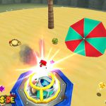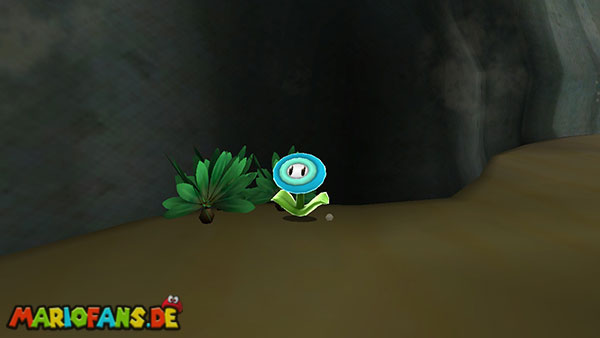 Zu Beginn müsst ihr den Maulwurf besiegen. Das funktioniert am einfachsten indem ihr ihn mit den herumliegenden Kokosnüssen angreift. Werft dazu die Kokosnüsse mit einer Drehattacke in Richtung des Maulwurfes. Ist er besiegt feuert ihr euch mit der Kanone erneut zu dem Planeten, wiederum solltet ihr den Unverwundbarkeits-Stern einsammeln, um damit die Gegner zu beseitigen. Auf der Unterseite schnappt ihr euch die Feuer-Blume, und kehrt schnellstens zum Strand zurück. Lauft zu dem offenen Durchgang in die Höhle und entzündet alle drei Fackeln. Somit taucht eine Eis-Blume auf. Als Eis-Mario lauft ihr weiter in die Höhle und auf die andere Seite. Bei den Wassersprinklern gelangt ihr nur als Eis-Mario nach oben, um am Ende die Stange zu erwischen. (Das Zeitlimit ist leider etwas knapp bemessen)