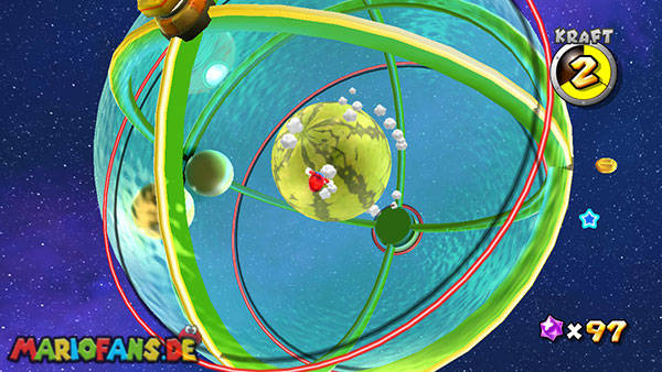 Klettert nach oben, und immer weiter in dieser Höhle nach oben. Zwischendurch müsst ihr euch bei den Seifenblasen Kanonen in eine Seifenblase einschließen lassen, damit ihr weiterkommt. Achtet außerdem auf die Zauberer die euch immer wieder attackieren. Irgendwann landet ihr auf einem Planeten mit kleinen roten Fischen. Ihr müsst hier alle Korken im Boden versenken, damit ihr über die nächste Seifenblasen-Kanone weiterkommt. Am Ende landet ihr auf einem durchsichtigen Planeten. Weicht den roten Energiewellen aus, und achtet auf die Tennisbälle im Inneren des Planeten. Diese müsst ihr mit einer Stampfattacke erwischen wenn sie unter euch vorbeirollen, und damit die Melone im Inneren des Planeten treffen. Sobald ihr die Melone mit allen drei Tennisbällen getroffen habt könnt ihr auch schon wieder den Stern einsammeln.