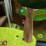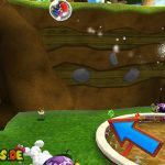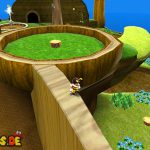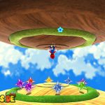 Über diese gelangt ihr nach links, wo ihr auch schon den nächsten Bodenschalter sehen könnt. Ist dieser aktiviert klettert ihr bei der Wand vor euch nach oben, benutzt unter Umständen Wandsprünge damit ihr weiterkommt. (Ihr müsst dazu an eine Wand springen, wenn Mario nach unten rutscht drückt ihr erneut die Sprung-Taste, damit Mario von der Wand wegspringt) Ganz oben angelangt lauft ihr im Bach weiter, am Ende springt ihr zwischen den Wänden nach oben zu dem Sternenring. Lauft auf dem Gebilde nach unten, und springt innerhalb des grünen Kreises weg, damit ihr weiter nach unten gelangt. Auf der Unterseite schließlich befindet sich auch schon der nächste Sternenring.