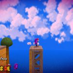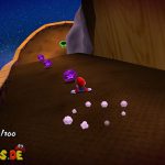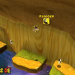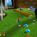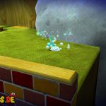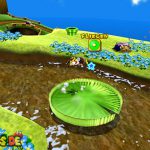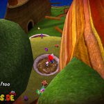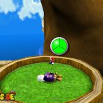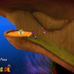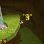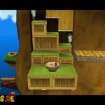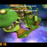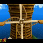 Auf dem nächsten Objekt lauft ihr nach unten, und nach links für einen Unverwundbarkeits-Item. Damit erledigt ihr alle Feinde, weiter geht es auf der Oberseite, springt einfach durch das Loch nach unten. Lauft wiederum nach links, benutzt die grüne Schaukel um nach oben zu kommen. Lasst euch aber dennoch ganz links nach unten fallen, und sammelt den roten Pilz ein, damit eure Lebensenergieleiste erhöht wird. Weiter geht es zurück nach oben, bei der Sprungfeder Plattform benutzt ihr eine Stampfattacke, damit sie euch nach oben befördert. Auf der höchsten Ebene lauft ihr nach links, und aktiviert den roten Bodenschalter, nun bewegen sich die Plattformen vor der Windmühle. Springt daher auf eine von diesen, und fährt bis nach oben mit.