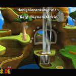 Lauf zunächst nach rechts hoch zum Springbrunnen. Sammle dort die große ?-Münze ein, damit der Bienen-Pilz erscheint. Dieser ist rechts neben dem Wasserfall. Sobald du dich zu Bienen-Mario verwandelt hast, kannst du hinter dem Wasserfall hochfliegen. Am Ende der Rutsche fliegst du am besten über den Honig bis zum Sternenring.