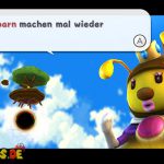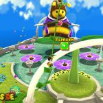 Lauft zu der Blume und dreht euch am Stängel nach oben, fliegt noch mit Hilfe eurer Bienen Kräfte weiter zur nächsten Insel. Wiederholt das ganze, und fliegt schließlich zu der großen Insel mit dem Baum. Der große Stinkkäfer ist selbstverständlich nicht gerade erfreut euch zu sehen. Benutzt eine Stampfattacke um ihn auf dem Rücken zu treffen, mit Hilfe eurer Schwebefähigkeit (als Bienen-Mario) solltet ihr die richtige Höhe erreichen können. Nun beginnt der Riesenkäfer selbst zu fliegen. Um ihn das zweite Mal zu erwischen nutzt ihr eine der Blumen, dreht euch nach oben und fliegt über ihn hinweg, benutzt jedoch früh genug die Stampfattacke, damit ihr ihn auch wirklich erwischt. Ihr müsst den Käfer insgesamt drei Mal treffen, passt jedoch auch auf die Wasserlacken auf, vermeidet diese, da ihr ansonsten zurückverwandelt werdet.