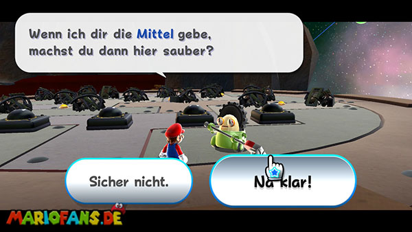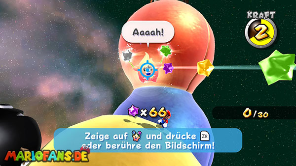 Diese Mission ist erst verfügbar, wenn du Prinzessin Peach befreit hast und ein Schabernack-Komet über die Galaxie hinweg fliegt!