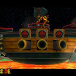 Der nächste Zwischengegner. Er greift euch zunächst mit Gesteinsbrocken an, dann folgt eine grüne Kokosnuss. Diese schleudert ihr zweimal zu ihm zurück, um einen Treffer zu landen. Sprich achtet darauf wo die Kokosnuss nach dem ersten Mal auftaucht, damit ihr sie auch erwischt. Zusätzlich achtet ihr natürlich auf die Plattformen, bleibt nie zu lange stehen, damit ihr nicht in der Lava landet. Für den letzten Treffer müsst ihr die Kokosnuss dummerweise gleich drei Mal zurückschleudern, was besonders schwierig sein kann. Vor allem die unzähligen Gegner die im Laufe des Kampfes auftauchen können euch Schwierigkeiten bereiten. Bleibt dazu am besten ständig in Bewegung, und haltet erst dann an wenn ihr die Kokosnüsse zurückschleudert.