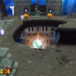 Lauft nach unten und benutzt den Sternkreis um vor das Geisterhaus zu kommen. Lauft nach oben und zu dem Durchgang, die Spinne die hier hängt solltet ihr zunächst beseitigen. Lauft den Pfad nach vorne weiter, zwischendurch solltet ihr jedoch auf der Seite anhalten, und warten bis die schwarze Kugel vorbeigerollt ist. Im Gebäude angekommen aktiviert ihr den Schalter neben der Tür, dann lockt ihr den Geist in das Licht. Lauft die Treppe nach oben und aus dem Bild taucht ein weiterer Geist auf, auch ihn müsst ihr in das Licht locken, somit bekommt ihr einen Schlüssel, der automatisch die Tür links oben entriegelt.
