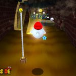 Im nun folgenden Gebiet müsst ihr nach vorne laufen, und nach links auf dem Ring entlang. Weicht den Bomben aus, und folgt dem immer enger werdenden Pfad weiter. Am Ende folgen einige Sprünge, bis ihr schließlich den kleinen Planeten in der Mitte erreicht. Von diesem aus könnt ihr schließlich den Stern einsammeln. Ihr müsst diese ganze Aktion übrigens nicht mit einem Unverwundbarkeitsstern machen. Die Bomben könnt ihr alternativ auch mit Sternen abschießen, und obwohl die Oberfläche des mittleren Planeten hell leuchtet passiert euch nichts wenn ihr sie im nicht unverwundbaren Zustand betretet. (Da sich das Sprungverhalten von Mario teilweise sehr verändert, kann es im Unverwundbarkeits-Modus sogar schwieriger sein hier durchzukommen)
