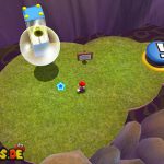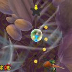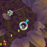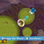 Folgt dem Weg über die Plattformen nach rechts, lest die Anweisungen auf dem Schild und springt in die große Blase. Ihr müsst die Blase vorsichtig lenken und so die Sternensplitter einsammeln. Achtet vor allem auf Minen, die Propeller führen Euch meistens in die richtige Richtung. Habt Ihr alle fünf Teile aufgesammelt, taucht auf einer kleinen Plattform ein Sternenring auf, den Ihr benutzt.