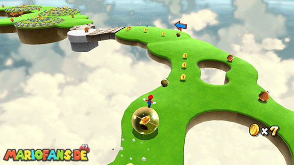Nachdem Schildhilf dir das Rollen des Sternenballs beigebracht hat, geht es zur ersten Sternenballkanone. Die katapultiert dich zu einem kleinen Planeten, wo du viele Münzen sammeln kann. Dort ist ein Loch, welche zu zwei parallel laufenden Stäben führt, sodass der Sternenball zu einem großen Planeten geführt wird, der viele Löcher hat und du deshalb aufpassen musst. Nach einem schmalen Steinweg gibt es zwei Wege. Der linke Weg ist schmal und daher schwer, der rechte Weg aber zwingt dich dazu, zu springen. Wenn du einen der beiden Wege gemeistert hast, schießt dich die letzte Sternenballkanone zu einem Planeten mit einem Windrad und einem Fahnenmast. Du musst nur noch in das Loch rollen, daraufhin erscheint der Power-Stern aus dem Sternenball.
