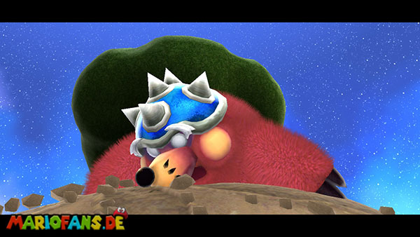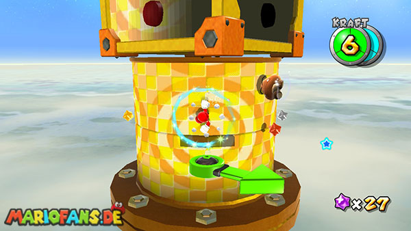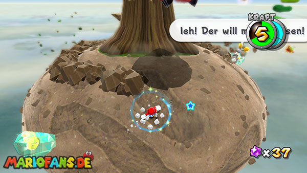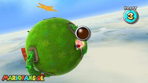 Aktiviert auch auf dem nun folgenden Planeten den Korken durch eine Stampfattacke, und ein roter Pilz taucht auf. Weiter geht es zum nächsten Zwischengegner.
