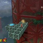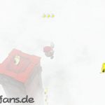 Rechts neben dem Eingang zum Geheimen Blumenfeld befindet sich eine gelbe Stange, die du hoch klettern kannst, um auf das Gebäude mit dem geheimen Blumenfeld hinaufzugelangen. Auf der anderen Seite des Gebäudes befindet sich eine weitere Stange, über die du zu einem Parcours aus zerfallenden Plattformen und Schwingstangen kommst. Am Ende befindet sich ein Schlüssel. Der Power-Mond erscheint danach oben auf dem Gebäude und kann über einen durch den P-Schalter aktivierten Blumenpfad erreicht werden.