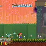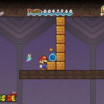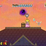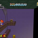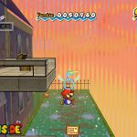 Plündert in 3D den Münzblock links hinter der Hecke. In 2D marschiert ihr rechts bis zum Ende des Abschnittes, steigt auf den Block (vorher mit Tippi sichtbar machen) und hopst hoch, woraufhin eine Kletterpflanze erscheint. Steigt diese nach oben und springt mit Peachs Schirm links runter auf das Hausdach. Öffnet die Kiste, wechselt mit Mario in die 3D-Ansicht und springt schnell (!) nach links auf den Balkon. In 2D öffnet ihr eine weitere Kiste und erhaltet eine Miseria-Karte (078). Springt runter zur Eingangstür und durchschreitet sie.