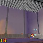 Geht wieder zurück in die große Halle und verlasst das Stockwerk. Die erste Tür unten könnt ihr ignorieren, marschiert deshalb gleich zur zweiten. Den großen Knappi trickst ihr ganz einfach aus, in dem ihr gleich in 3D schaltet und schnell links am Rand zur Tür mit dem Schloss hechtet. Sobald es möglich ist, hopst ihr den Stern an.