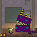 Es folgt die dritte Tür im oberen Stockwerk: Drückt rechts den Knopf und euch droht die Decke auf den Kopf zu fallen, genau genommen fährt sie mitsamt spitzen Zacken gen Boden. Wartet zunächst, bis sie ein ganzes Stückchen nach unten gefahren ist, und wechselt in die 3D-Ansicht. Geht ein paar Schritte zur Seite und hüpft auf die herunterkommende Decke. Wechselt wieder in die 2D-Ansicht und wartet, bis die Decke wieder nach oben gefahren ist. Hopst zunächst links und dann rechts auf die Blöcke. Sprengt die Steine mit einer Bombe weg, lauft bis zur Blockwand, umgeht sie in 3D, sprengt in 2D weitere Steine per Bombe weg und umgeht eine zweite Blockwand erneut in 3D. Zu guter Letzt öffnet ihr die Kiste und ihr erhaltet einen Schlüssel.