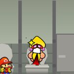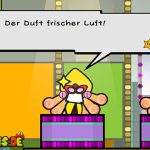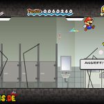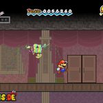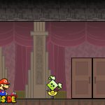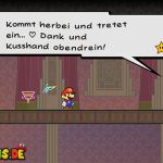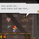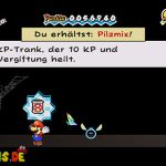 Ist Atom-Buu besiegt, leuchtet ihr mithilfe von Tippi den Bereich links unterhalb der oberen Tür ab und entdeckt eine Treppe. Anschließend könnt ihr durch besagte Tür treten. In der 3D-Ansicht ortet ihr ein paar versteckte Fragezeichenblöcke und könnt in 2D rechts speichern. Betretet das Frauen-WC und öffnet alle Klotüren, bis ihr Merlee gefunden habt. Das Ergebnis der folgenden “Quizshow“ hat keinen Einfluss auf den Spielverlauf, weshalb ihr euch für irgendeine Merlee entscheidet.