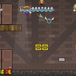 Im nächsten Raum geht es gleich weiter durch die Tür links unten. Dort müsst ihr rechts oben eine Bruchstelle mithilfe einer Bombe sprengen und in 3D-Ansicht in den dahinterliegenden Gang marschieren sowie an dessen Ende die Tür benutzen. Springt wieder in 3D ein paar Pfeilblöcke an und marschiert in 2D durch die Tür links oben. Den großen Atom-Buu besiegt ihr mit Bomben, genauer gesagt stellt ihr euch vor ihn, legt eine Bombe vor sein Gesicht und dreht euch um, kurz bevor diese explodiert.