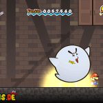 Lauft die Treppe runter und schaut in 3D hinter die Treppe, um einen Fragezeichenblock zu entdecken. In 2D könnt ihr weiter rechts abspeichern, geht dann durch die erste Tür von links. Trickst die Geister wie folgt aus: Einfach an ihnen vorbeilaufen und sobald sie hinter euch wieder sichtbar werden sowie sich noch nicht herumgedreht haben, schnell ein paar Mal draufhüpfen.