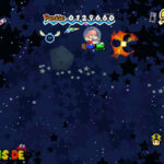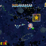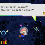 Setzt den Helm auf und schwebt nach rechts unten. Irgendwann kommen euch S.O.S.-Signale entgegen, welche aus einem Bereich mit funkelnden Sternen entweichen. Leuchtet die Stelle mit eurer Wiimote ab und ihr entdeckt ein Raumschiff. Untersucht es sogleich. Nach der kurzen Konversation drückt ihr für ein paar Sekunden den A-Knopf und lasst los.