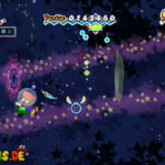 Was folgt, ist eine kleine Actioneinlage: Schwebt nach rechts und ballert alles nieder, was euch entgegenfliegt. Betretet die violetten, runden Wirbel, um von einem Abschnitt zum nächsten zu gelangen. Irgendwann seht ihr gleich zwei auf einmal, jedoch bringen euch beide praktisch zur selben Position, weshalb es egal ist, welchen ihr durchschwebt. Im vierten Abschnitt befindet sich rechts eine Sackgasse, in der ihr nur in der 3D-Ansicht ein verstecktes Extra hinter einem Asteroiden lokalisiert. Danach müsst ihr ganz nach links fliegen und erneut am Rande des Abschnittes einen violetten Wirbel benutzen. Haltet euch wieder rechts und ihr gelangt zum Ende des Levels.