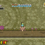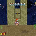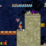 Es folgt ein Aufgabe der ganz anderen Sorte: Euer außerirdischer Freund Klirps muss dringend auf die Toilette, aber diejenige, die gleich rechts zu Beginn des Levels steht, ist besetzt. Klopft kurz an und ihr erfahrt, dass es an Papier mangelt. Arbeitet euch springend nach rechts vor und gewöhnt euch an eure neue Sprunghöhe hier im All. Solltet ihr in einer Grube landen, aus der ihr nicht mehr herausspringen könnt, wechselt in 3D und ihr könnt über ein paar Stufen zurück nach oben klettern.